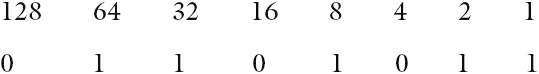 BOTTOM to TOP to give the binary value. Again using 107, we get: